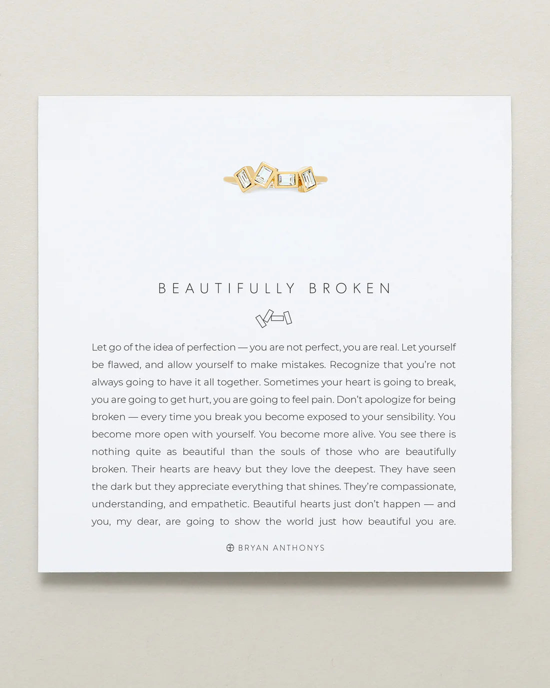 Let go of the idea of perfection — you are not perfect, you are real. Let yourself be flawed, and allow yourself to make mistakes. Recognize that you’re not always going to have it all together. Sometimes your heart is going to break, you are going to get hurt, you are going to feel pain. Don’t apologize for being broken — every time you break you become exposed to your sensibility. You become more open with yourself. You become more alive. You see there is nothing quite as beautiful than the souls of those who are beautifully broken. Their hearts are heavy but they love the deepest. They have seen the dark but they appreciate everything that shines. They’re compassionate, understanding, and empathetic. Beautiful hearts just don’t happen — and you, my dear, are going to show the world just how beautiful you are.